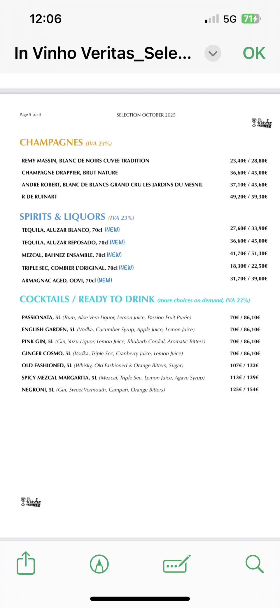 Champagne, vins, liqueurs, coktails