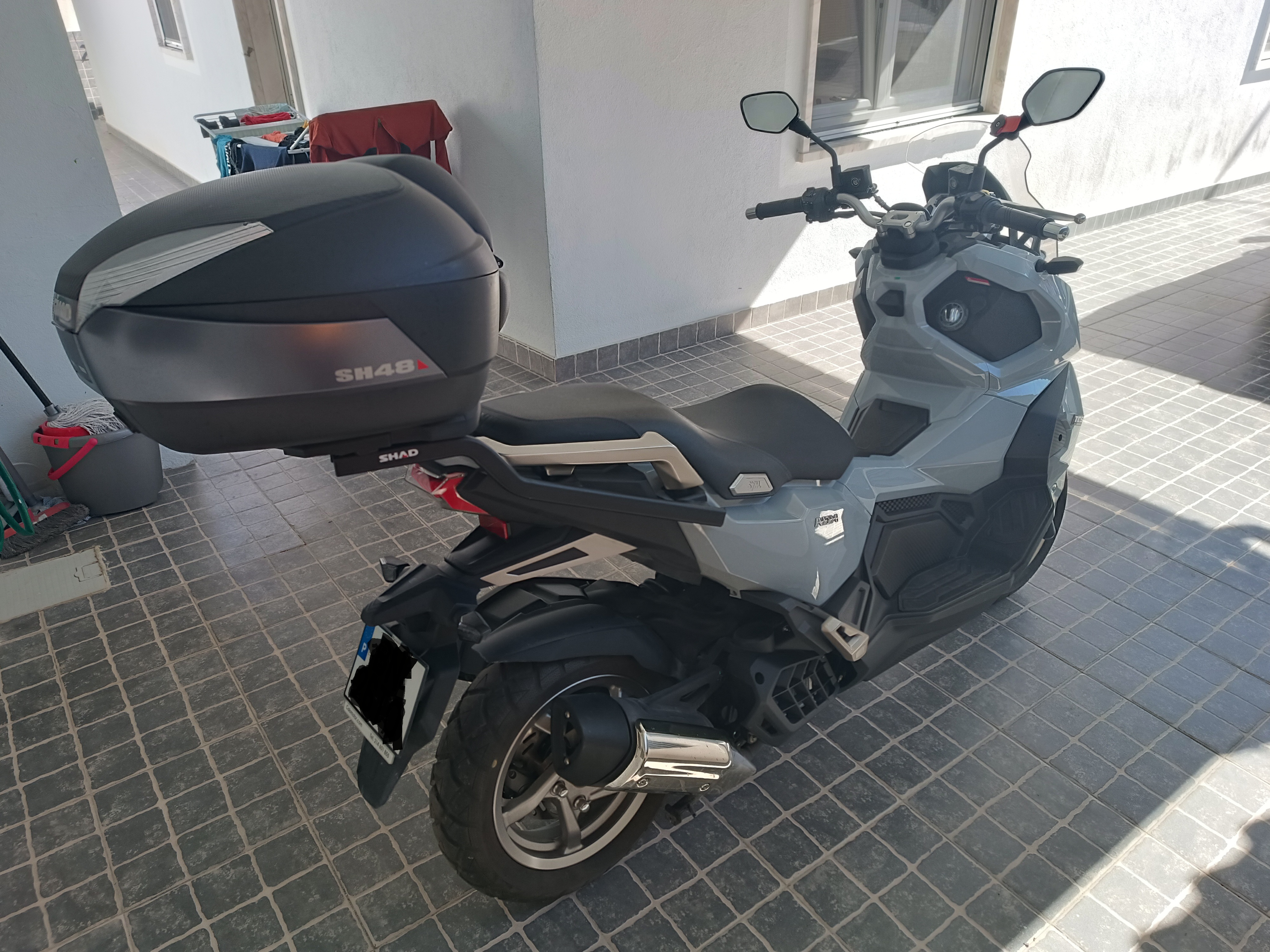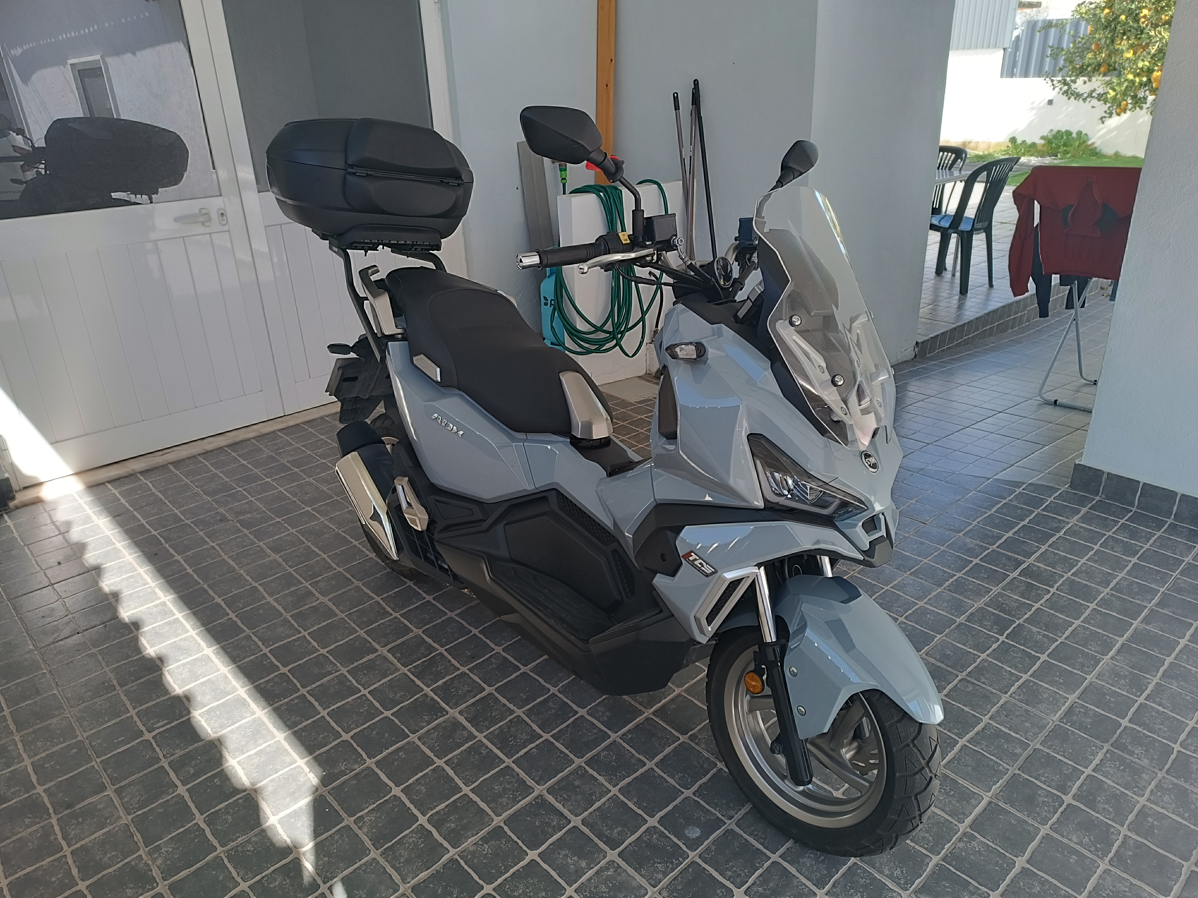 Scooter ADX125 immatriculé en Octobre 2024 (première main) avec topcase SHAD SH58 modulable.